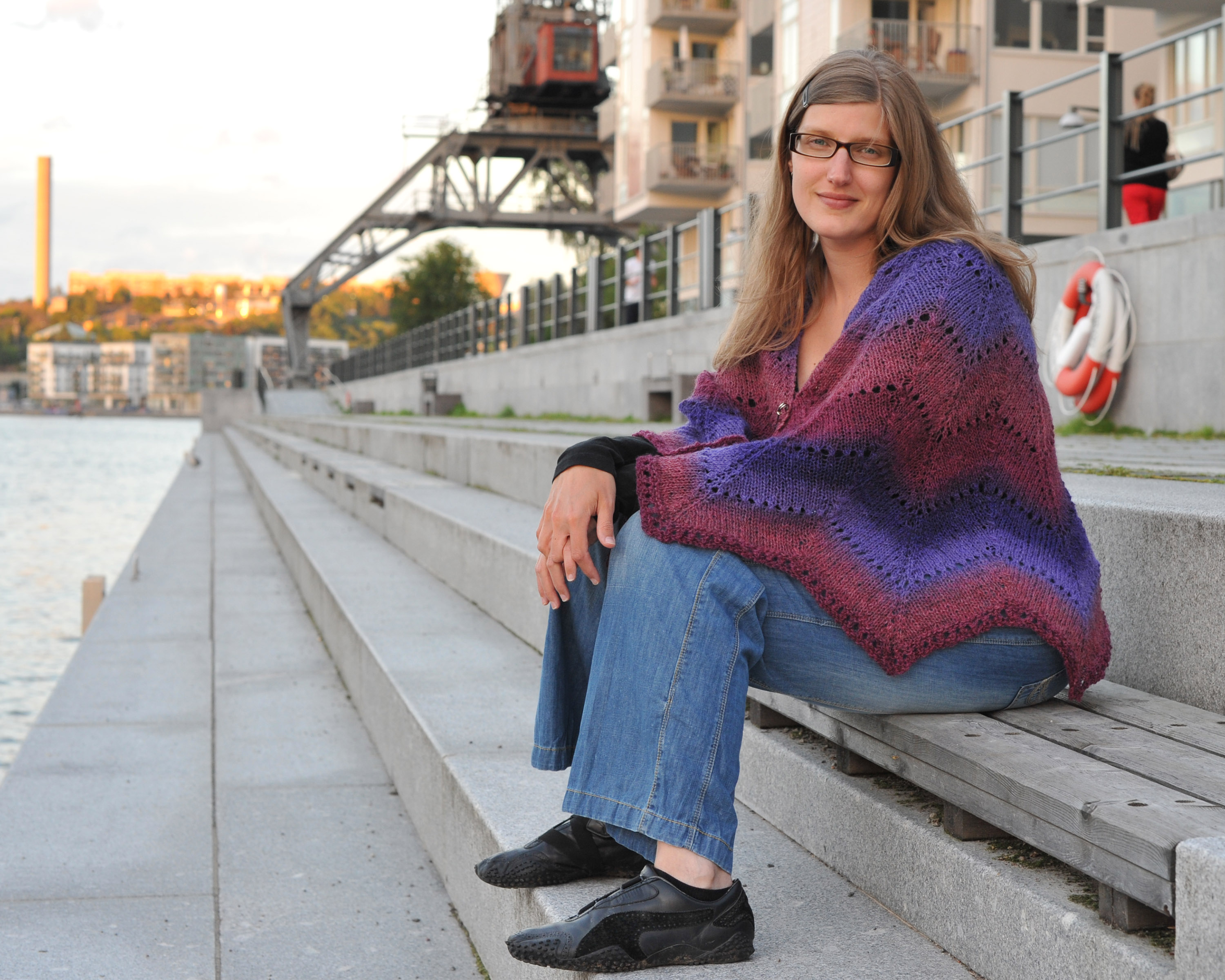 Sommarstickningen bjöd, förutom det ännu hemliga ullprojektet, på en till Revontuli. Jag tänkte att det skulle vara en bra bilstickning och med tanke på att vi har kört runt i Sverige under ungefär 200 mil så hinner även en långsamstickare som jag en bit. Sjalen stickades klart i bilen hem från Öland, förutom avmaskningen eftersom jag hade glömt att ta med mig en större sticka till det. Jag helst vill avmaska med en minst ett nummer större sticka för att det ska bli lagom fast och inte alldeles för tajt. Särskilt olämpligt i nederkant av sjal förstås. Men till specifikationerna: Garn: Evilla 6/2. Jag har gjort av med ca 215 g. Evilla passa extra bra till sjalar eftersom härvorna är lagom stora för det! Man får en sjal som matchar perfekt som färgsättningen var tänkt.