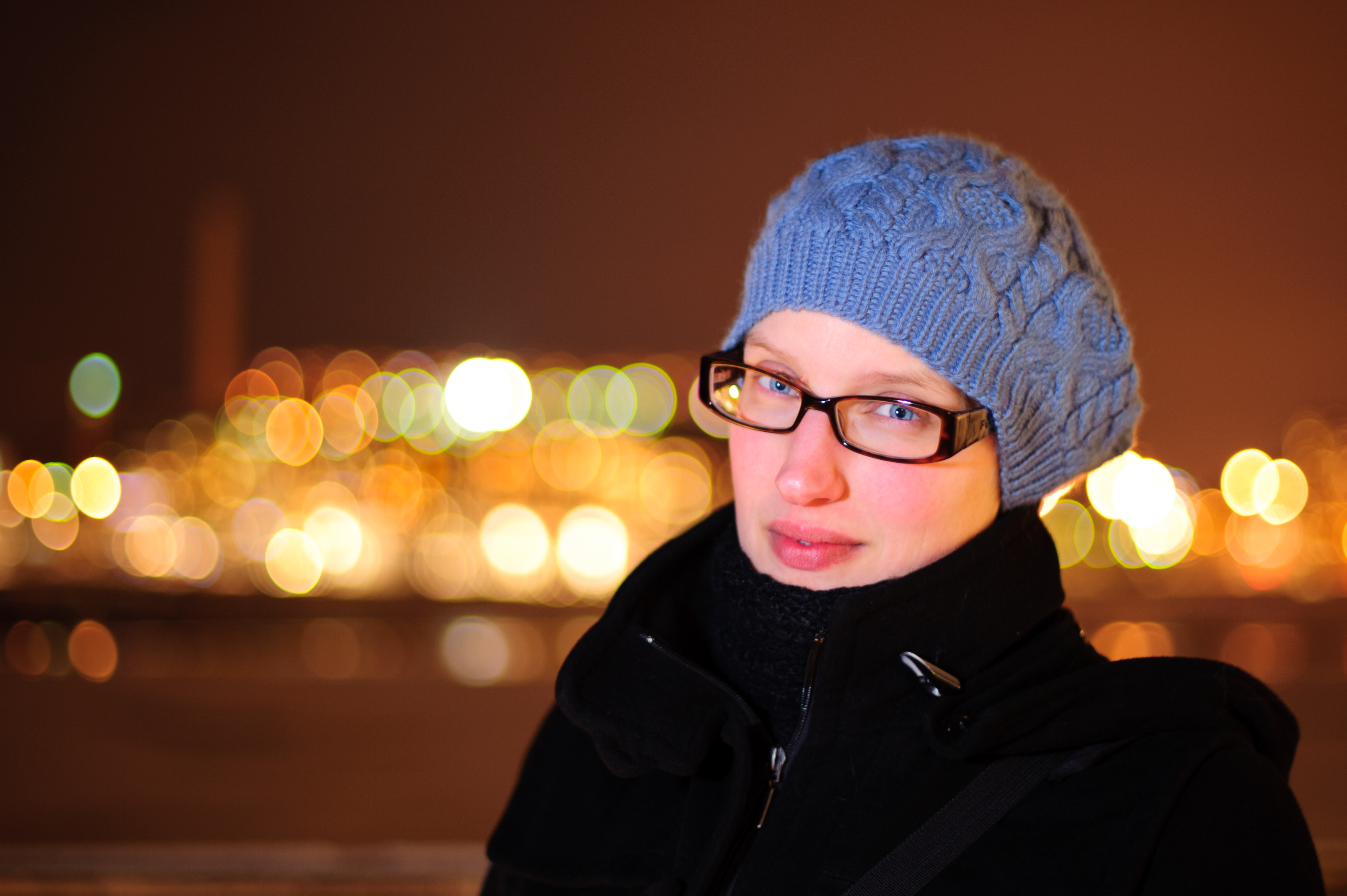 Mönstret är snyggt och inte alls så komplicerat som det ser ut. Jag har ju stickat en sån mössa tidigare och vet att det är ett tidseffektivt mönster som ger ett mycket snajdigt visuellt resultat. Jag är väldigt nöjd med min nya blågråa mössa! Hr J har fotat mig med mössa denna kalla kväll i februari (och halvt förfrusit händerna på kuppen). Att stå stilla i isande vind nere vid vattnet är inte totalt njutbart för vare sig fotograf eller delmotiv…