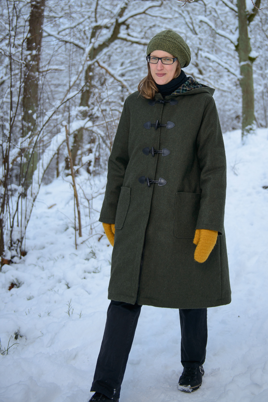 Länge sen senast och jag har en lång backlog! Trots det börjar jag året med nåt nytt: Ett av julledighetens inplanerade textila projekt var att sy en duffel helt själv. Nu blev det inte riktigt en duffel eftersom den saknar ok, men jag kallar den för en duffel ändå. Jag är nöjd och stolt över att jag lyckats sy detta plagg alldeles själv; i andra ytterplaggsprojekt har mammi ryckt in med mycket hjälp.