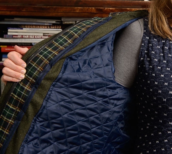 Apropå tråckling fick jag också jobba mycket med fodret, svårt att bara klippa bort motsvarande bit som infodringen på framstyckena är stor; det är länge sedan jag lärde mig att foder lever ett eget liv och inte nödvändigtvis följer normala fysikaliska lagar. Så, det har blivit en hel del nålande, tråcklande, repa upp, gör om o.s.v. Tills sist blev det ok och jag klippte bort överflödigt fodertyg med en hyfsat hög puls. Det gick dock bra och rocken beter sig än så länge riktigt snällt och drar sig inte.
