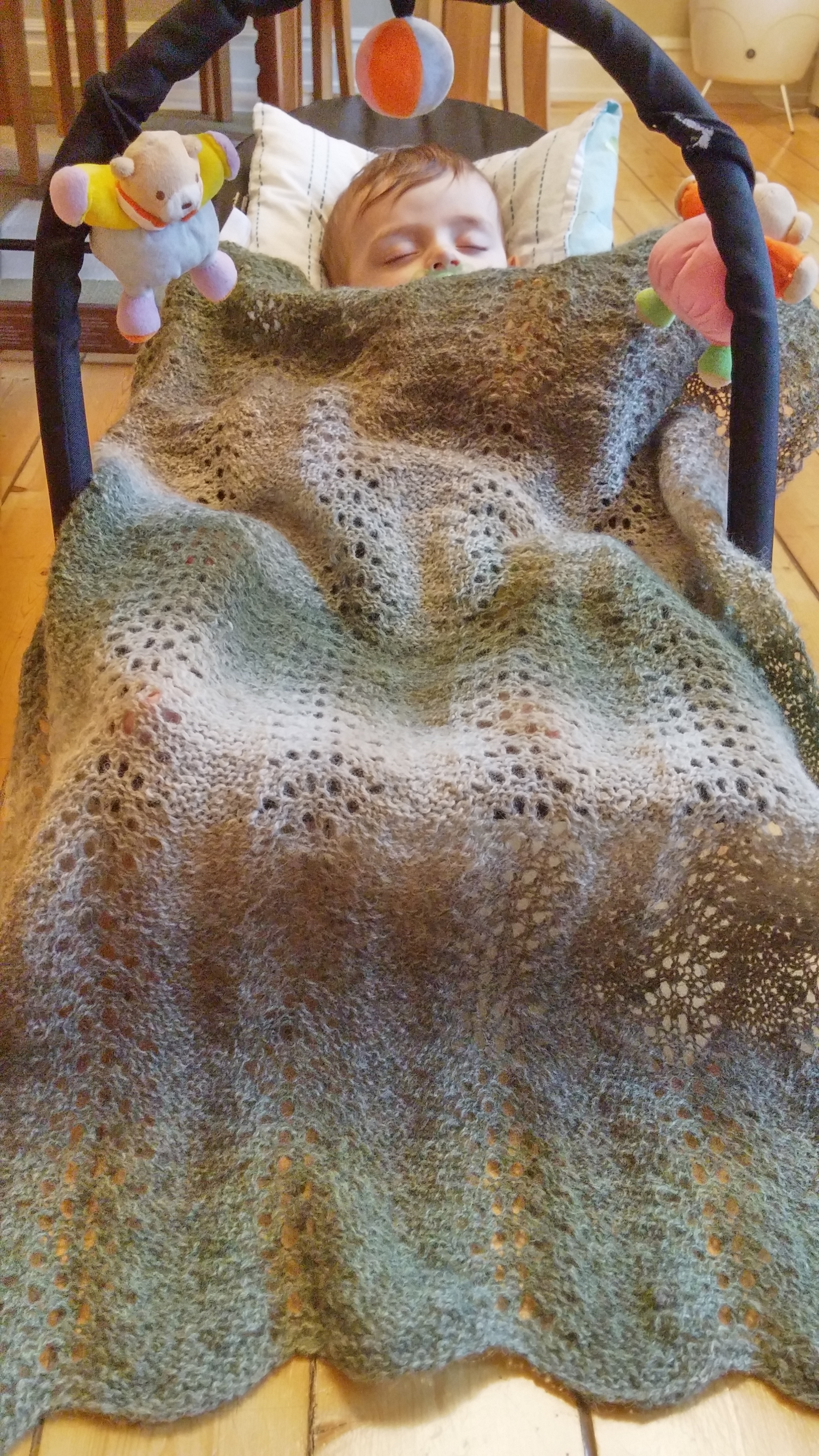 I höstas undrade Björn & Åsa om jag ville sticka en filt till deras Valter. Vintern närmade sig och vad passar då bättre än en liten ylle-filt? Åsa hade framsynt nog köpt med sig garn och mönster från Ullcentrum i Löttorp i höstas! Min första tanke var att väva en filt istället för att sticka så jag gjorde ett vävprov på min bordsvävstol. Dock insåg jag att det inte skulle bli riktigt så bra som jag ville (min bordsvävstol är lite smal och ger max en väv av knappt 55 cm), så jag bestämde sen att sticka filten enligt mönsterbeskrivningen som kom med garnet.