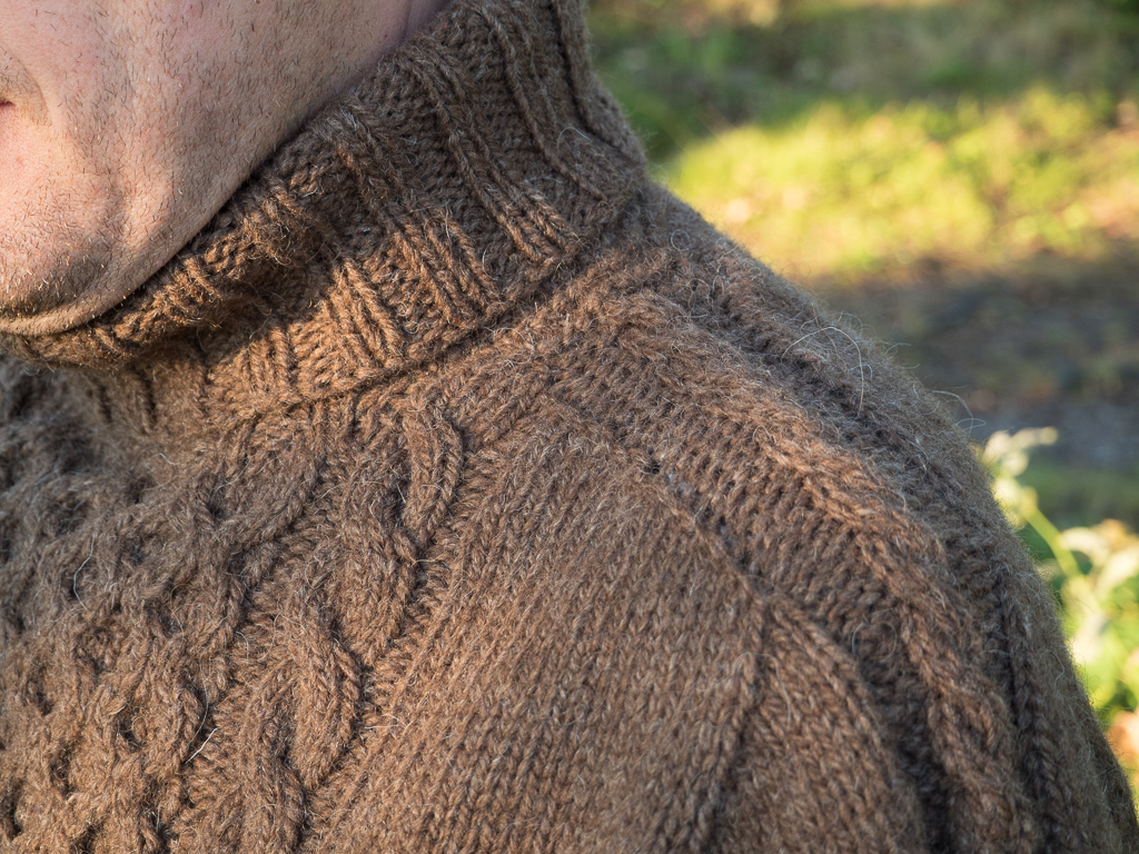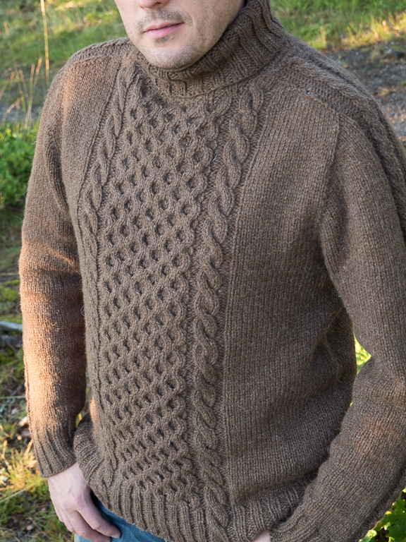 Övriga flätmönster finns bara på bålen på framstycket. Där är det ett bi-kake-mönster som ramas in av två enkla flätor. Fler flätor blev det inte dels för att vara säkra på att garnet skulle räcka och dels för att få till en design som passar bra (jag tycker att tröjor som har flätmönster över hela tröjan är snygga som struktur, men att det som plagg blir lite överlastat med hel-flätmönstrat, en smaksak helt enkelt).