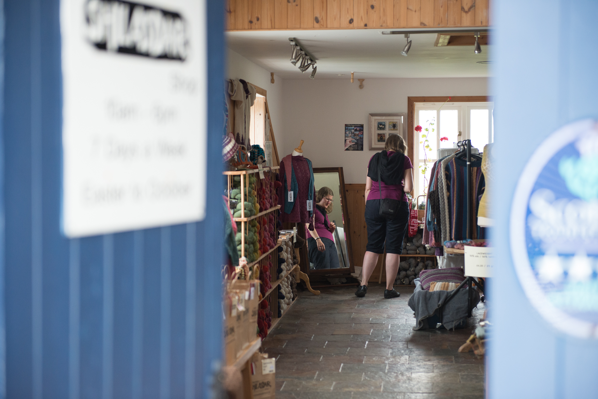 Förra sommaren var vi på Isle of Skye och på Shilasdair yrans och vi köpte vi båda garn; jag handlade orange som blev en Acorn trail och Jesper köpte naturfärgat shetlandsgarn i brunt (mitt lidande ansiktsuttryck på bilden handlar enbart om våndan av att bestämma sig och inte kunna köpa allt). Butiken är helt fantastisk och den ligger verkligen vid vägs ände men så vackert. Garnerna är mjuka och rustika i ett och det finns en massa information om hur de färgar garnerna. Rekommenderas varmt (funkar även för mindre garnintresserad make med fotointresse)!