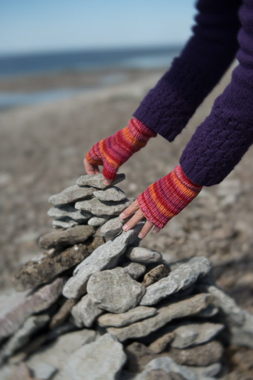 Så, här är mina krya-vantar i alla färger! De är stickade med enkel 1×1-resår med slätstickad tumkil som passar min långa tumme. Inte för att de är så speciella att de behöver många bilder för att demas, men miljön norra Öland gör det!