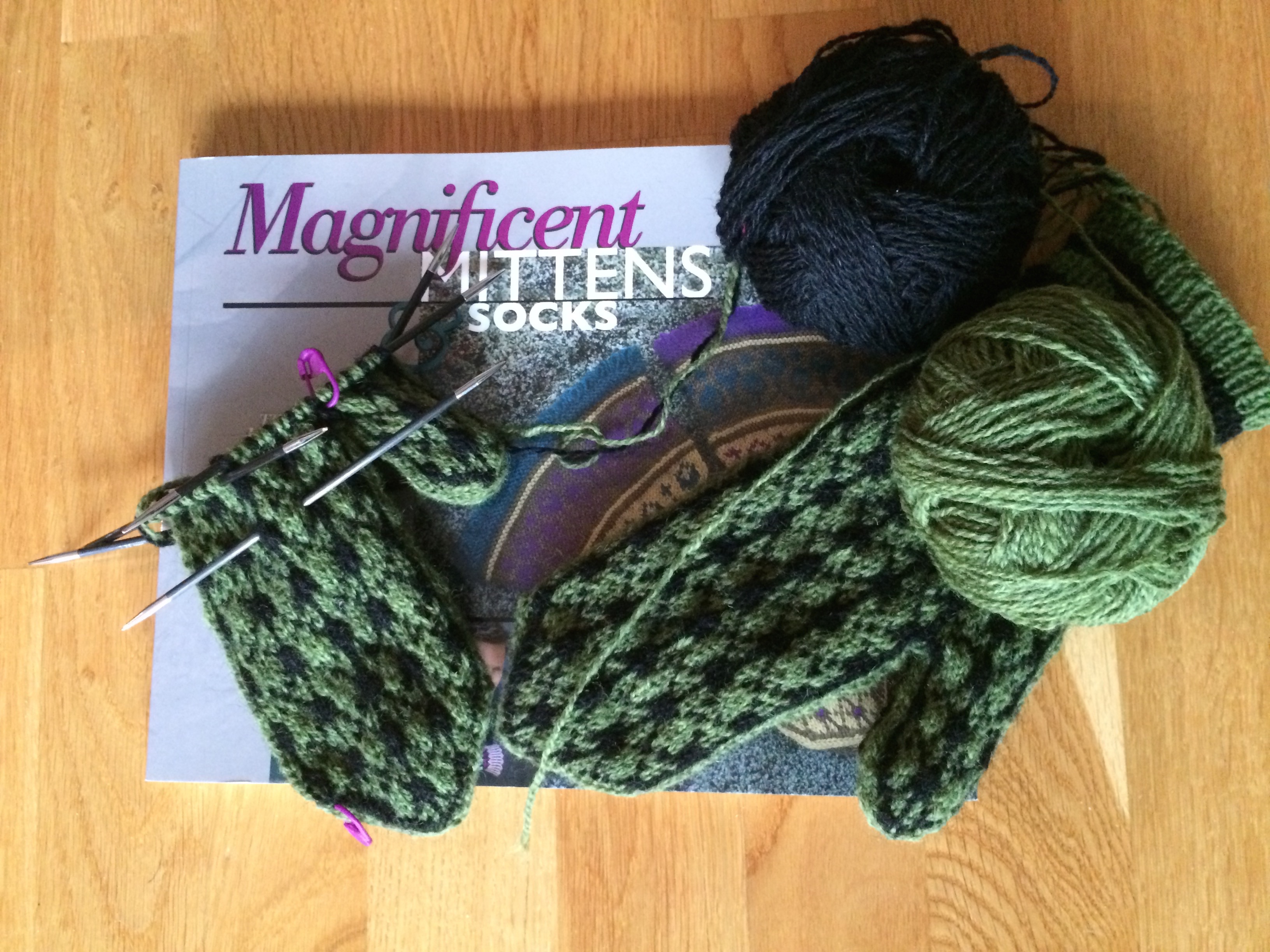 Det som återstår och som jag inte hittar beskrivning på i boken är att göra en ”riktig” tumkil. Nu har jag stickat med en s.k. ”sore thumb”, d.v.s. en som sitter helt i sidan (vantkroppen och tummen påbörjas och stickas på samma sätt och sätts sedan ihop smidigt i sidan). Hur jag ska integrera ihop detta på vettigt sätt i en tumkil på vanten har jag inte riktigt tänkt igenom och löst ännu, men det är klart att det går; bara att göra tvärtom mot vad man normalt gör tänker jag (hur svårt kan det vara?). Kanske detta blir nästa utmaning på vantfronten?