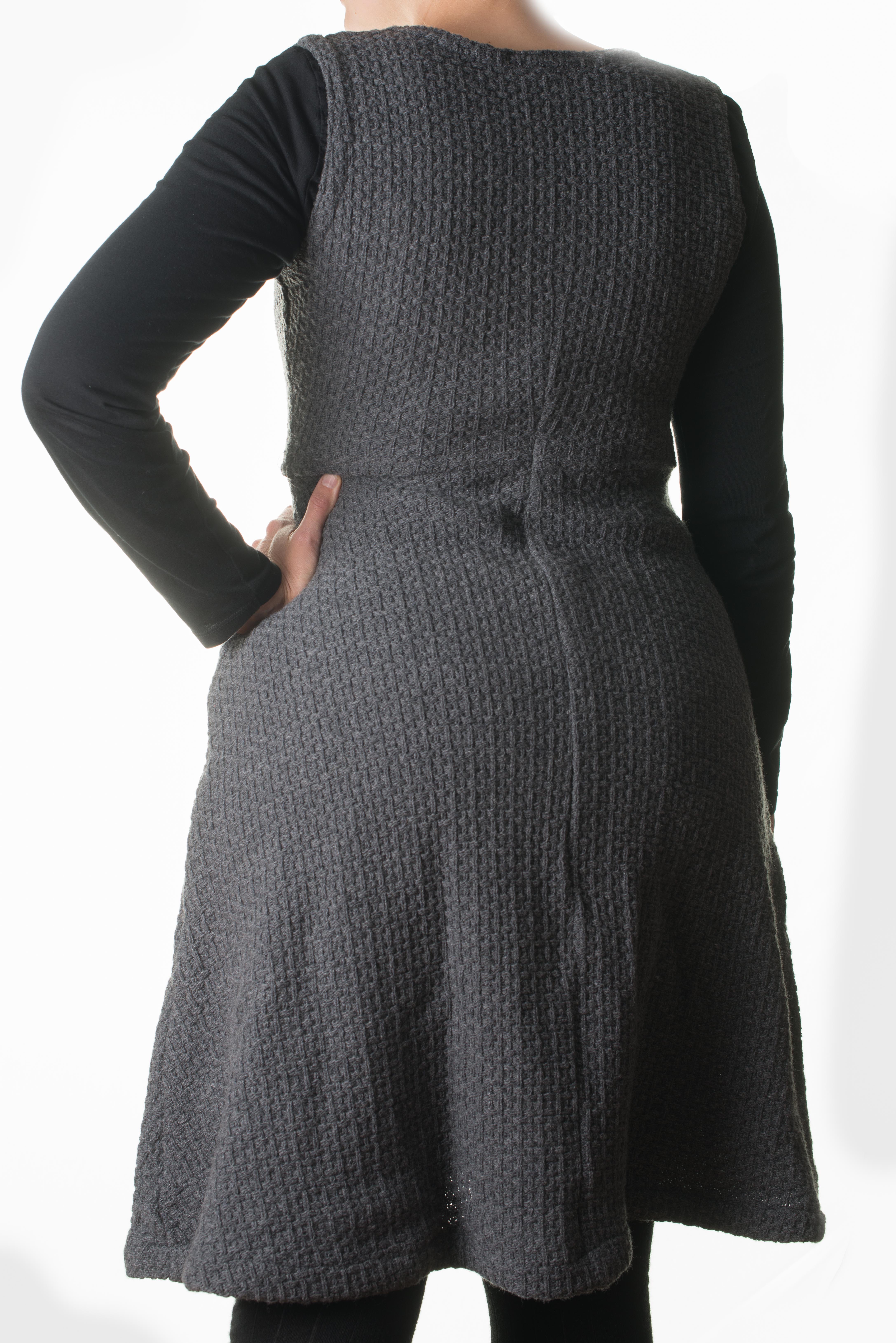 Klänningen har efter att ha använts töjt sig en del i sidsömmarna, men jag störs inte tillräckligt av det för att göra något åt det (ännu iaf). Jag gillar den och den är så enormt skön att ha på sig! (ja, den är lite skrynklig på bilderna eftersom den legat lite trångt i garderoben nu).