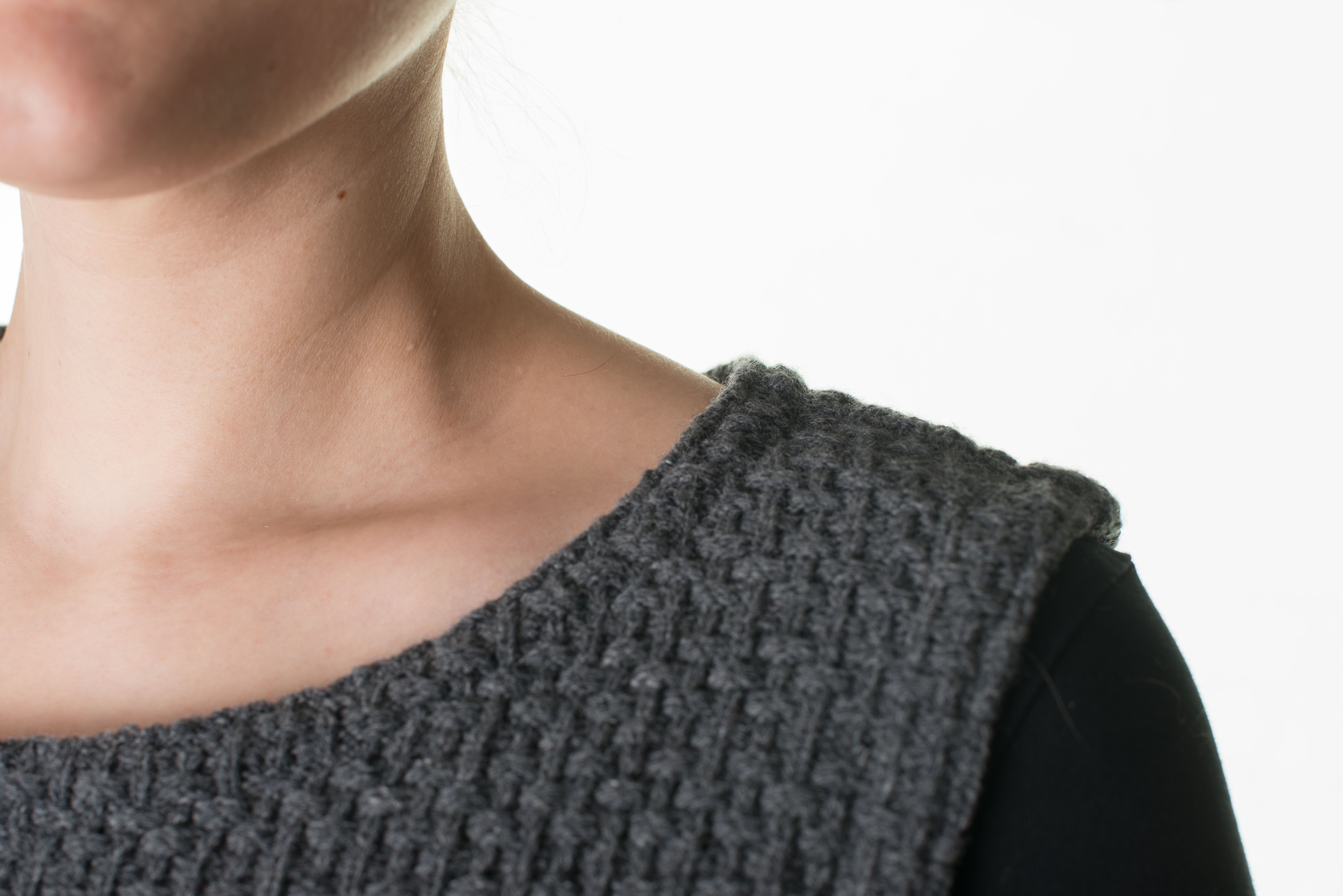 Jag har utgått från ett omritat enkelt mönster, men tyget var inte samarbetsvilligt alls. Trots att jag har min, enligt mig, alldeles underbara Pfaff-symaskin med över- och undermatning så funkade det inte särskilt bra med tyget. Det drog sig en hel del på ett sätt jag inte trodde det skulle; tyget är ganska grovt och känns lite ulligt, men har inget fall. Trots detta hade jag en hel del problem med overlock-sömmarna. Till slut gav jag upp och körde rakström och förstärkte den sen med overlock, då funkade det ok.