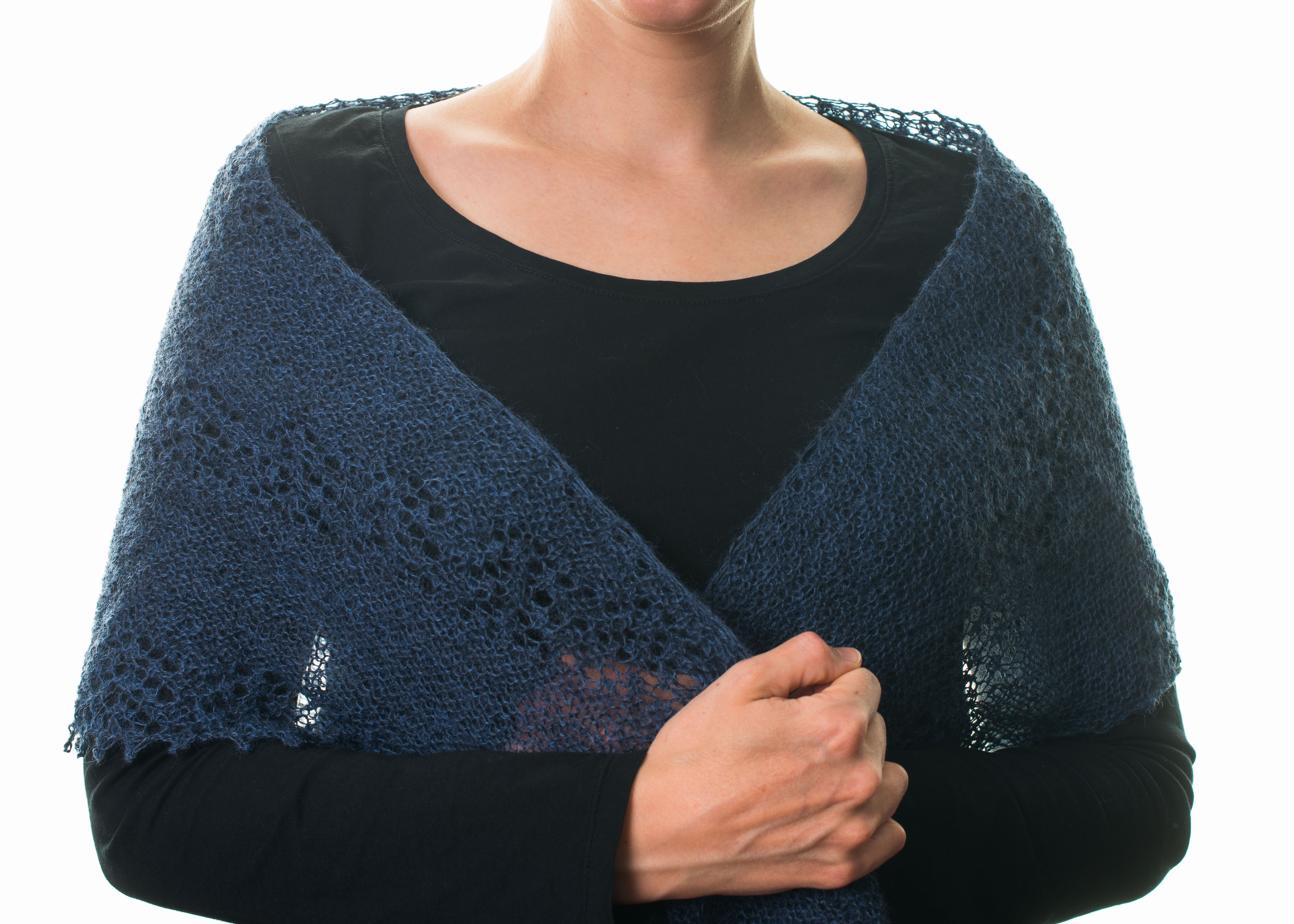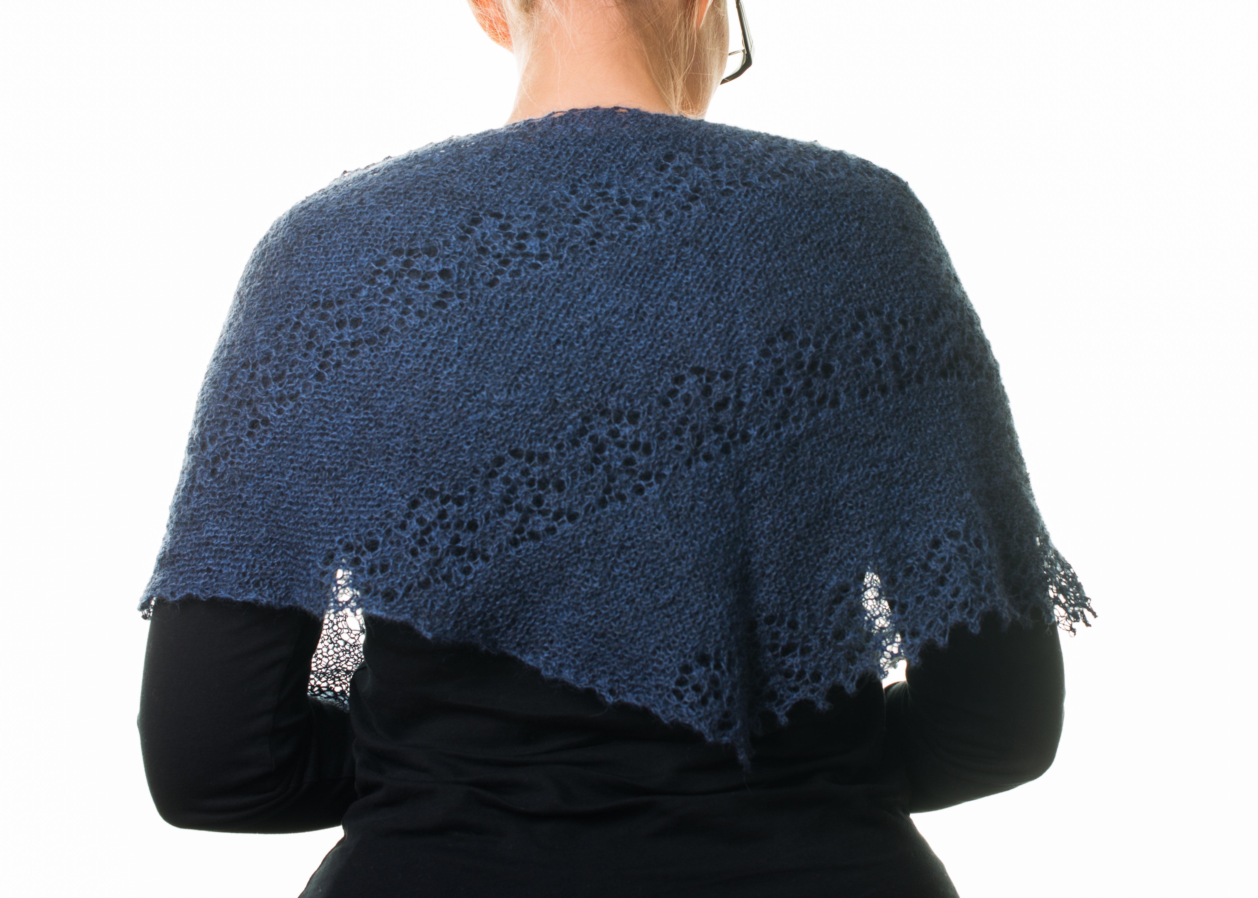 Under augusti såg jag en person som länkat till denna tjusiga sjal på Online stickcafé (Facebook-grupp). Jag tänkte att jag skulle kunna använda en härva av pälsullgarnet jag köpte på Östergötlands ullspinneri i somras till den så så blev det.