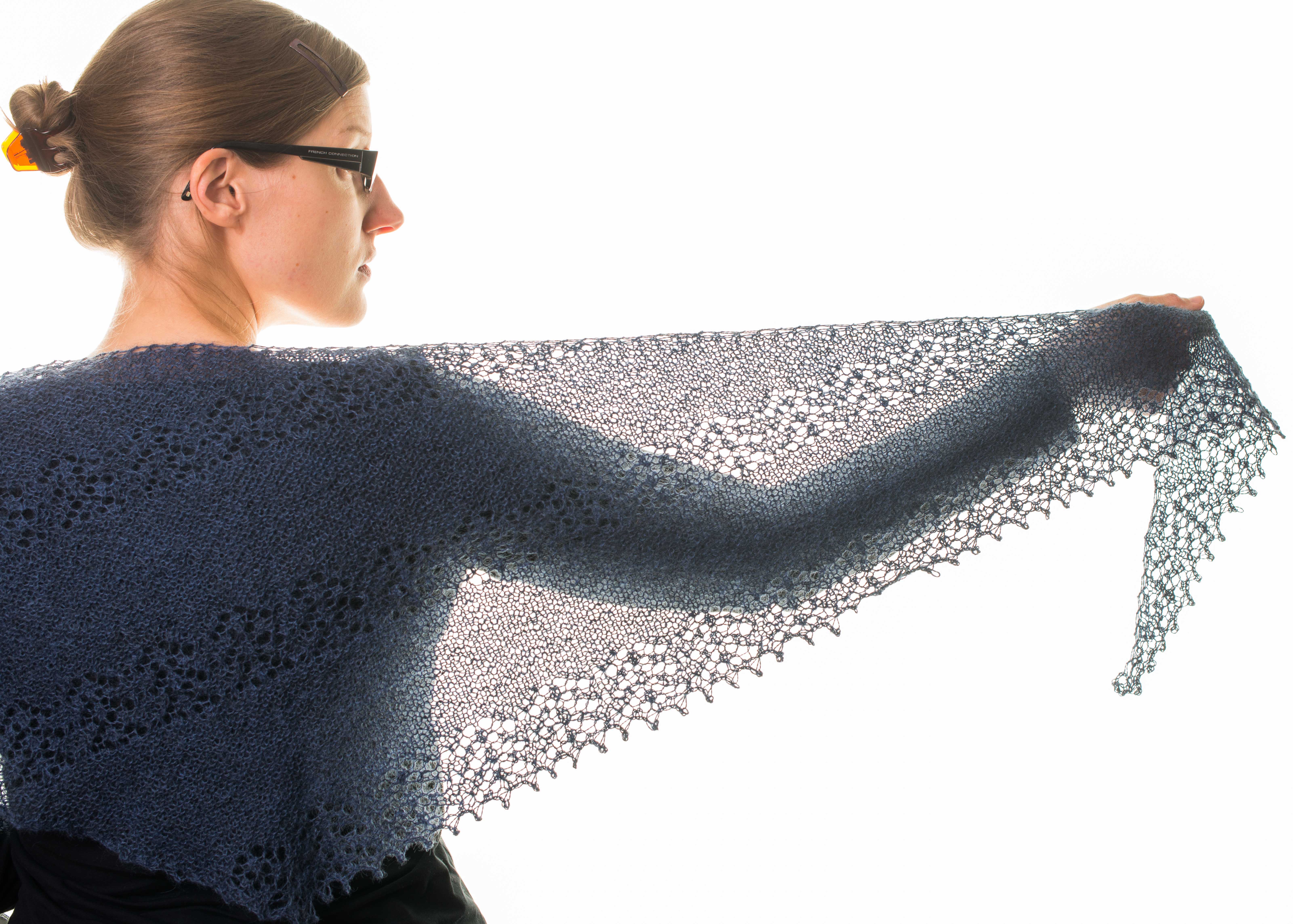 Jag gillar ändå sjalen, men ser det mest som en triangulär tunn sjal i en fin färg, jag tänker inte på den (i mitt detta första utförande) som en sjal med spetsstickning.